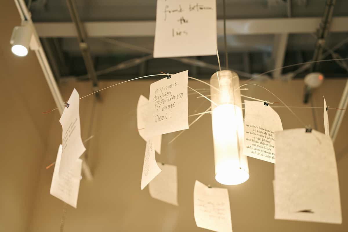 店内の照明には、チリの詩人、パブロ・ネルーダなどの言葉が吊るされている。