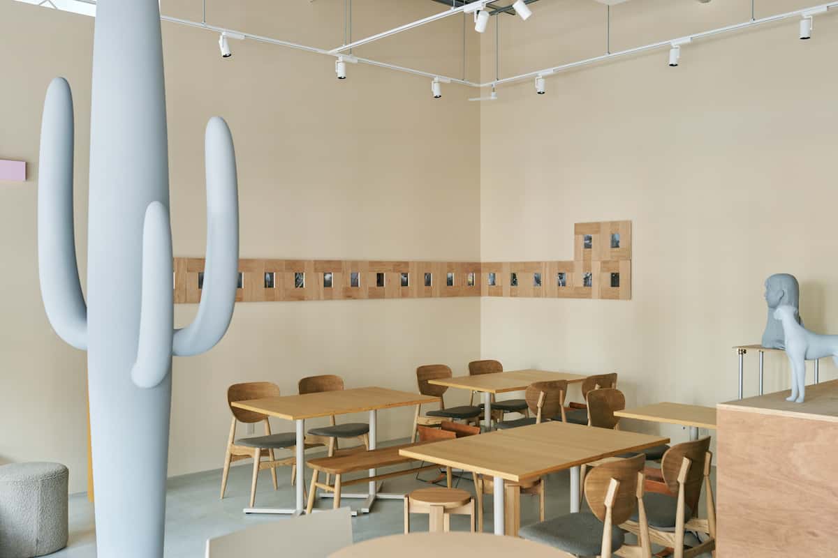 MINA店内に足を踏み入れると、あらゆる意味でニュートラルな空間が広がる。特筆したくなる装飾性や意匠性を意図的に排したと思われる、あくまで耳障りのよい場所だ。渋谷3丁目に矛盾しない、というと皮肉すぎだろうか。店内には、「ミュージアム」という名前を冠しているだけあり、確かにアート作品がそこかしこに展示されており、購入も可能だが、恭しく防護ケースに守られているわけでもない。ここでは、アートは提示されるものというより「気づかれるもの」として存在する。テーブルに置かれた『コーヒーテーブルブック』と呼ばれる展覧会図録は、喫茶メニューと一体化したZINEのような軽やかさだ(L PACK.らしい皮肉が効いている)。